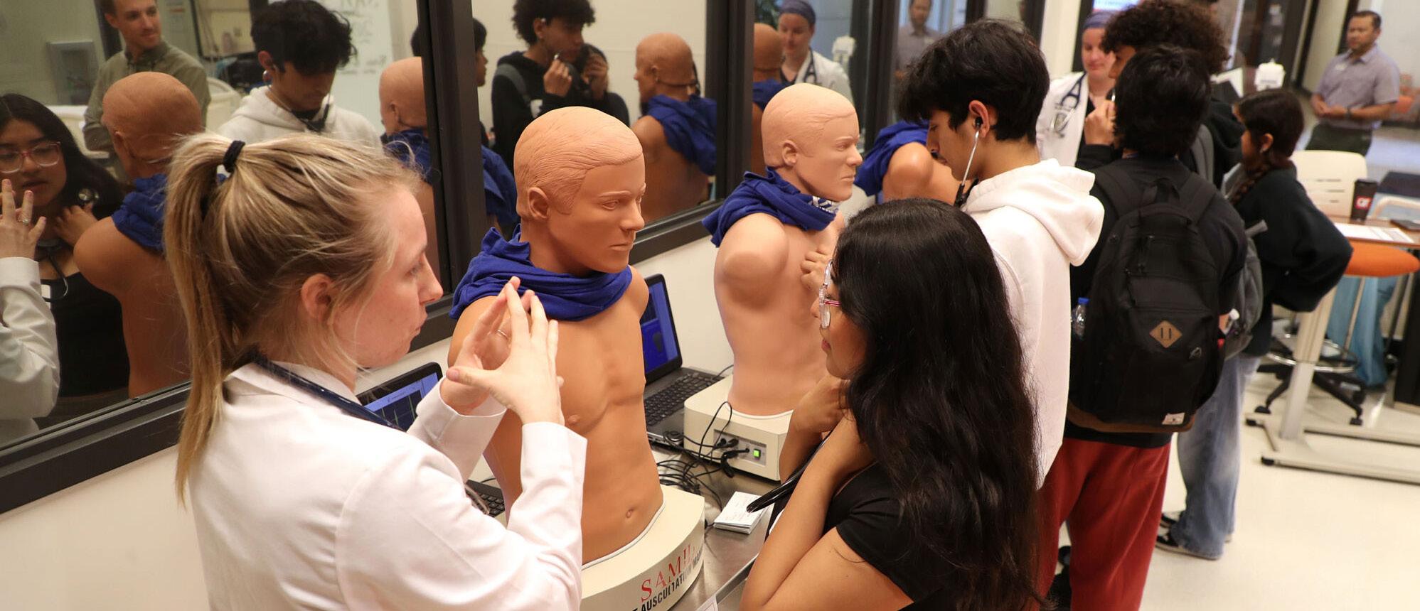 More than 70 sophomores from Tulsa-area high schools recently got to spend the day on the Oklahoma State University Center for Health Sciences campus learning how to take a patient’s vitals, doing chest compressions, listening for heart sounds, touring the inside of an ambulance, and learning about osteopathic manipulative medicine.
