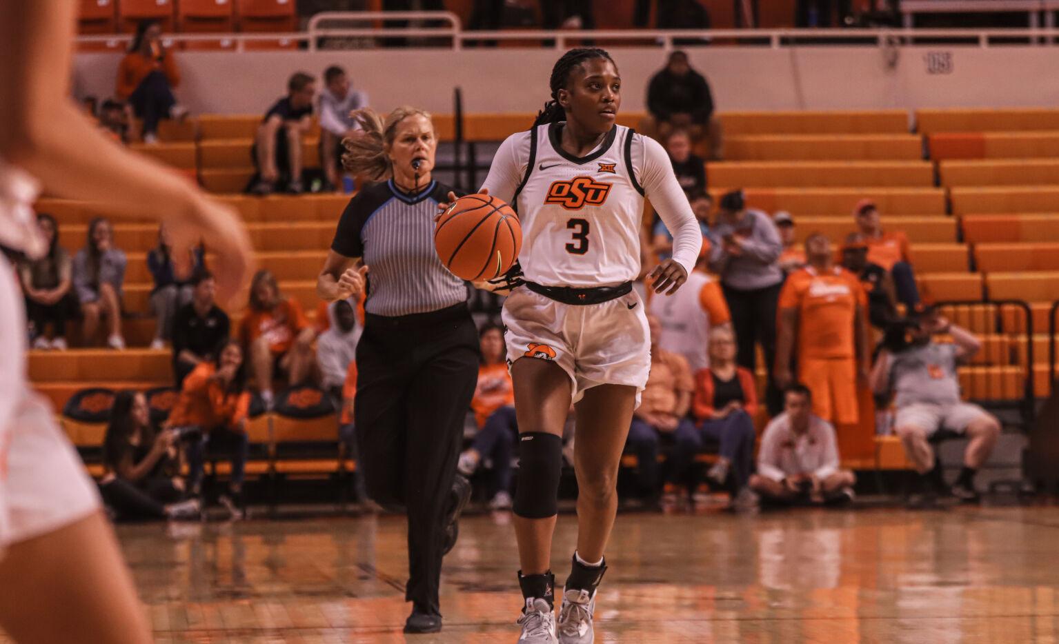 In OSU’s exhibition game versus Northeastern State on Tuesday, the Cowgirls had six double-digit scorers, with one being Naomie Alnatas (No. 3), who scored 14 points and drained four three-pointers.