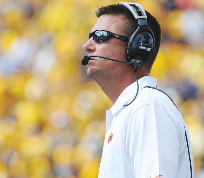 ROW 4 RIGHT: OSU head coach Mike Gundy taking the field pregame.