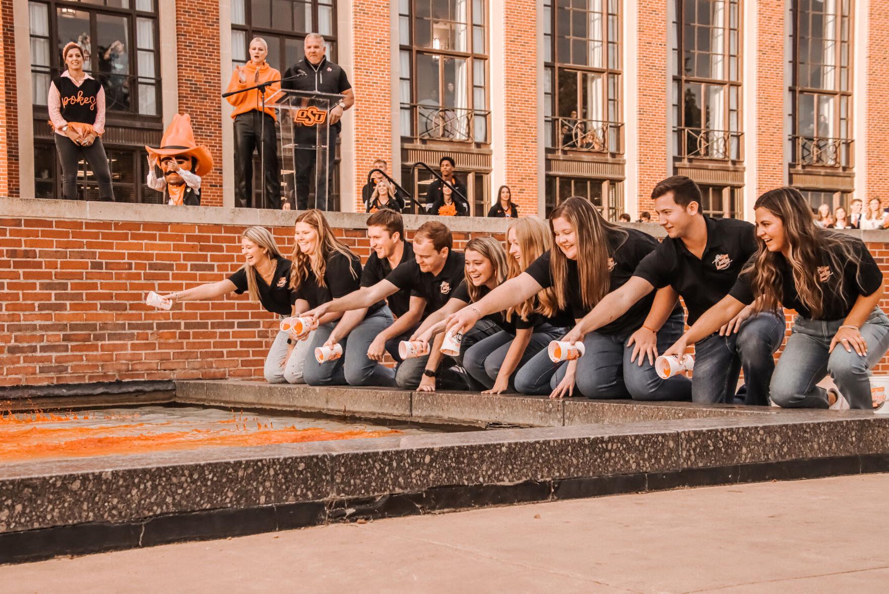 The fountain dyeing officially kicks off Homecoming week. You can download the Cowboy Legend app to keep track of all the events happening this week.