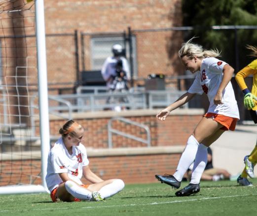 Olyvia Dowell (left) connected with Gracie Bindbeutel (right) for the game-winning goal against Kansas State.