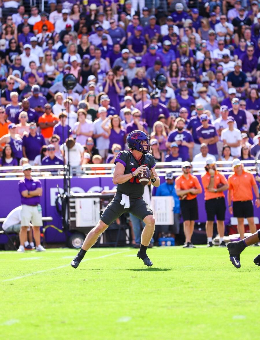 TCU remains undefeated and stays in the playoff hunt fol lowing another big home win over Kansas State. The usual suspects were involved in this one, quar terback Max Duggan was unstop pable, throwing for 280 yards and three touchdowns with no interceptions. Also, running back Kendre Miller had 171 yards and two touchdowns on 30 touches.