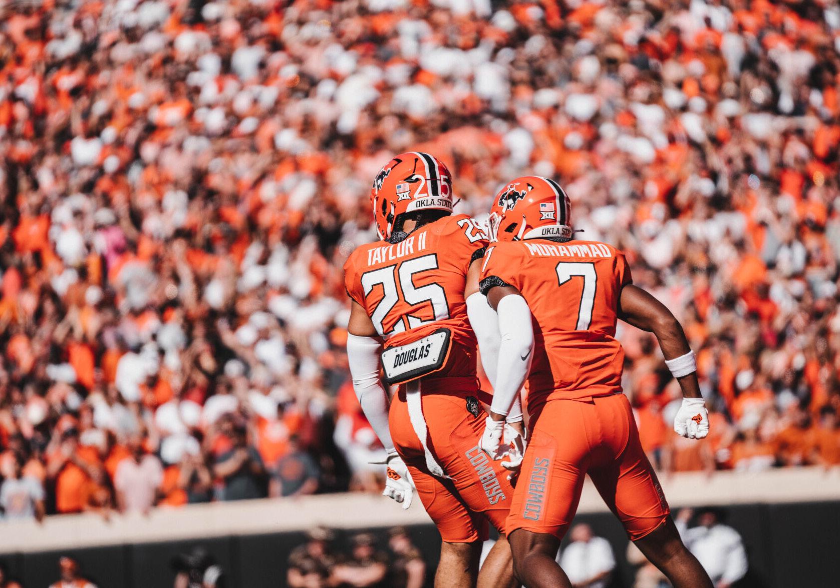 Jason Taylor (25) snagged two interceptions in OSU’s 41-34 win over Texas on Saturday afternoon in Boone Pickens Stadium.