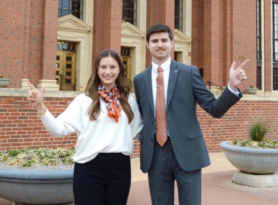 Wesley Hurlbut, SGA presidential candidate, and Victoria Smith, SGA vice presidential candidate, spoke to the crowd as the only pair advancing to the general election on March 11-12.