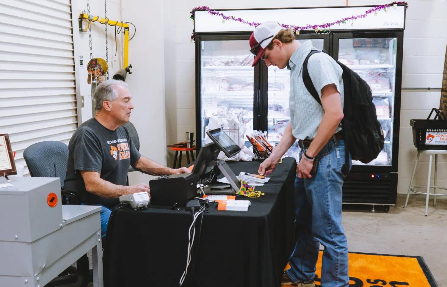 Every Friday afternoon, the back loading dock of the center transforms into Cowboy Meats, a retail outlet selling meat products processed by students.