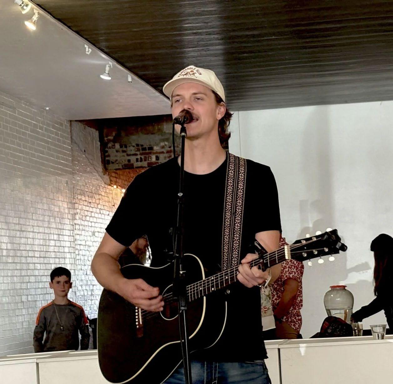 Music industry students from OSU are often a part of the local music performances at Modella. To open the event, Jake Taylor, a senior music industry major, performed a few of his original country songs. The crowd ranged from those who heard his music floating through the open door to parents of students from Lincoln Academy.
