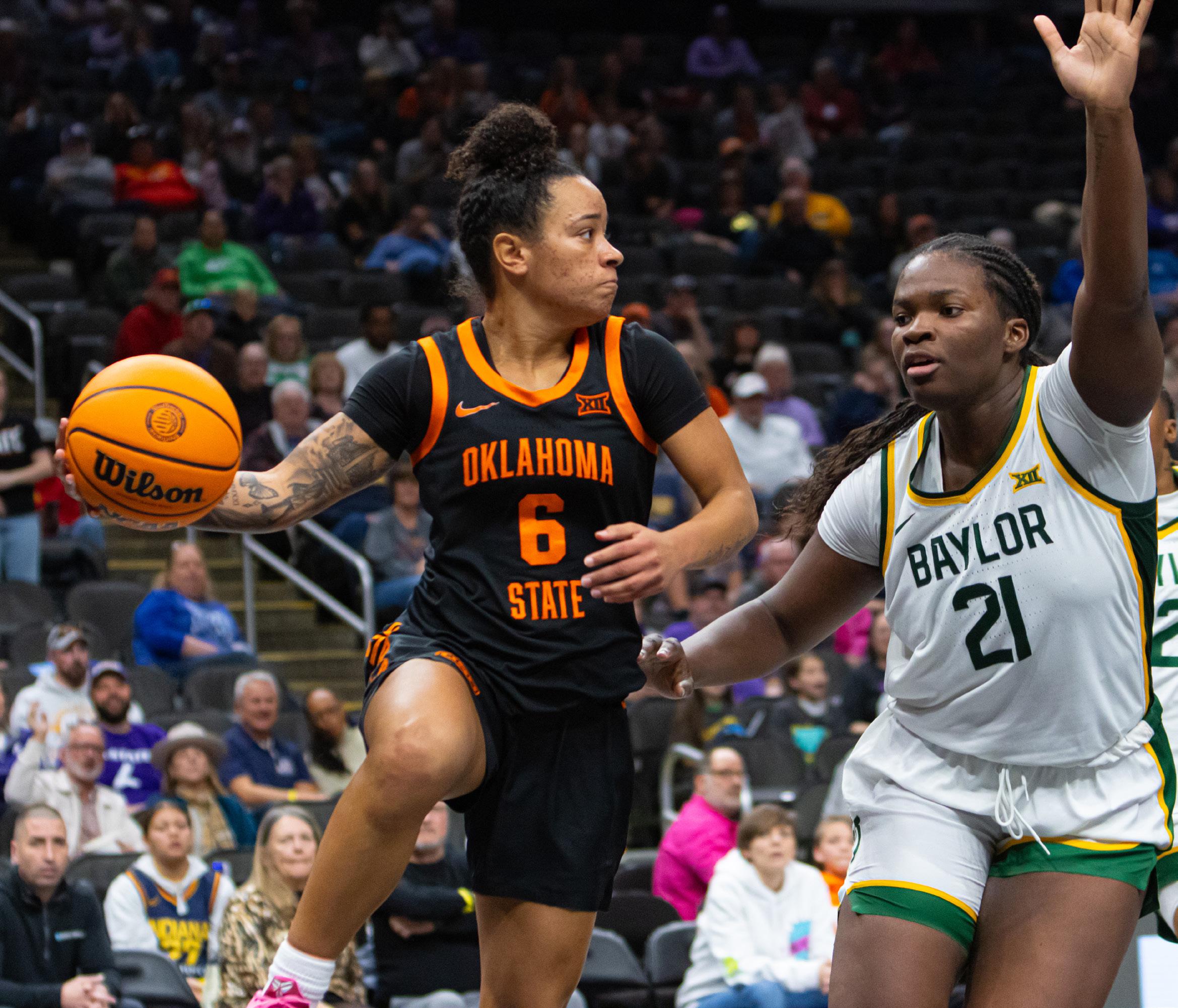 the score. On the following Cowgirl possession, she drew a double team, as she drove inside and kicked the ball out to a wide-open Stailee Heard, who drilled the go-ahead 3-pointer.