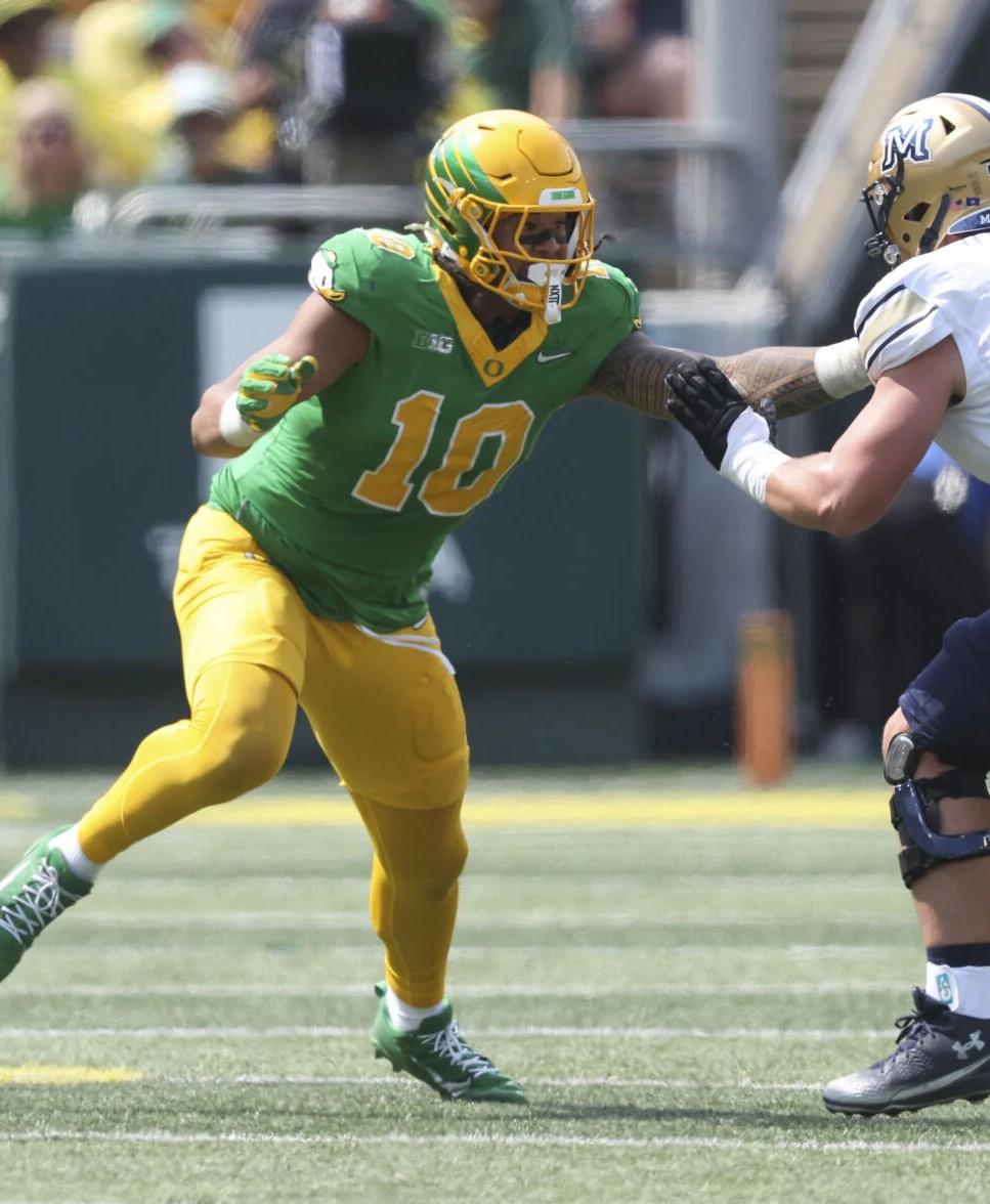 One of the returning seniors on Dan Lanning’s defense, Uiagalelei has proven that he can live in the backfield. He had 10.5 sacks a season ago and constantly pressures the opposing quarterback. He brought down Montana State’s quarterback twice as the Ducks cruised to 14 tackles for loss. With his experience coming off the edge, Uiagalelei has positioned himself as one of Oregon’s best defenders. With OSU still blending its offensive line together, watch for Uiagaleli to find ways into the Cowboys backfield.