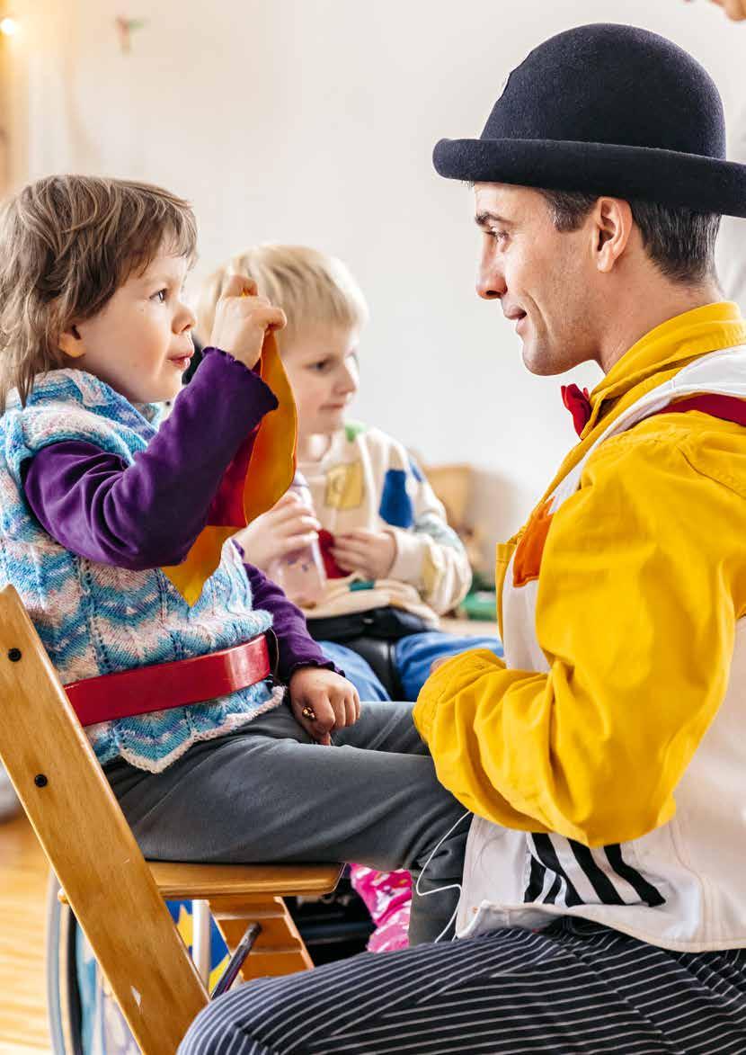 podimeno, dei furti. Le situazioni e le storie vengono create insieme. Grazie all’umorismo e al talento d’improvvisazione degli artisti si creano momenti così divertenti che probabilmente non saranno mai dimenticati. L’occasione di ridere ha un effetto molto positivo sulla salute, anche negli istituti per bambini con disabilità. Nadia Alessio, vicepreside e insegnante di sostegno del Centro pedagogico Wenkenstrasse, ci ha confidato: «I bambini si rallegrano sempre molto delle visite del Signore e della Signora Sogni. Gli artisti incantano subito i bambini. Quando sono qui, i bimbi ridono spesso e sono molto rilassati, osano provare cose nuove con i due artisti e mostrare un lato completamente diverso di sé.»