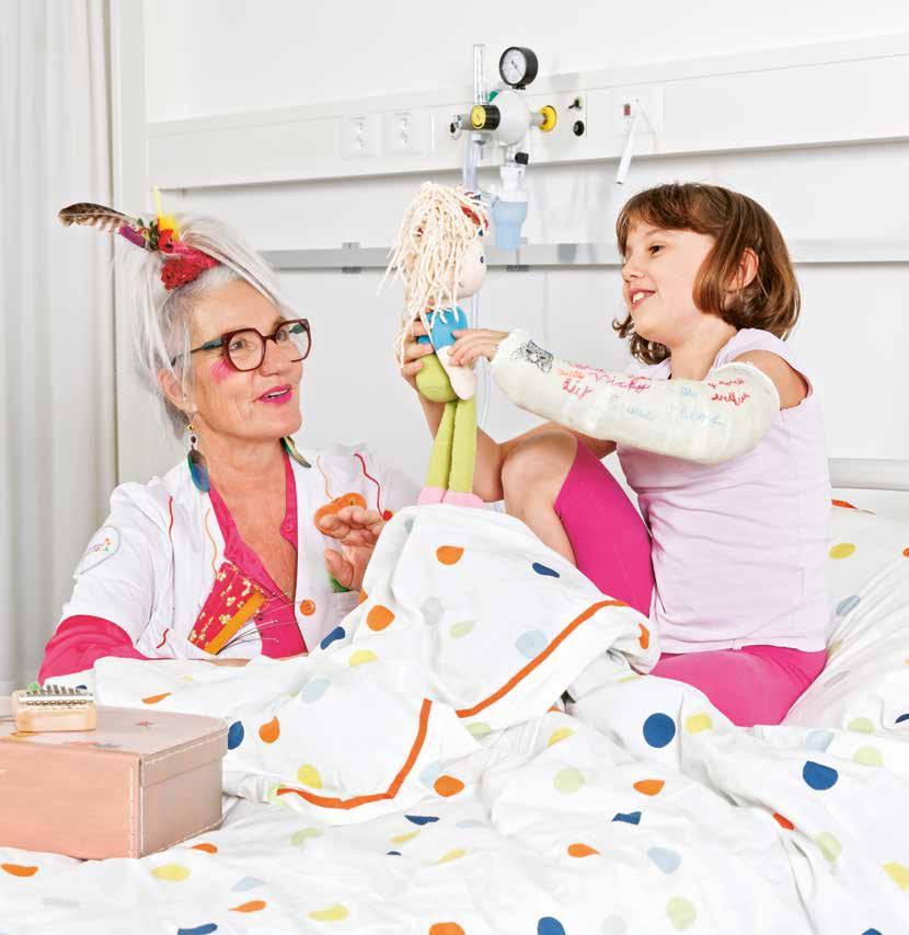 «Desideriamo regalare a ogni bambino un momento di gioia e meraviglia. Possono essere sufficienti anche delle piccole azioni, come uno scherzo o una bolla di sapone», dichiara Bibi Sabine Eitel, da cinque anni attiva in veste di dottoressa Chrüsimüsi. «Chrüsimüsi» significa «guazzabuglio variopinto», il che si adatta alla perfezione al suo ruolo. I bambini adorano il caos. E i colori. La sua collega, la dottoressa Schnick Schnack, presso la Fondazione Theodora da quasi 20 anni, completa il duo con un'allegra leggerezza. Insieme donano carezze all’anima lì dove sono più necessarie.