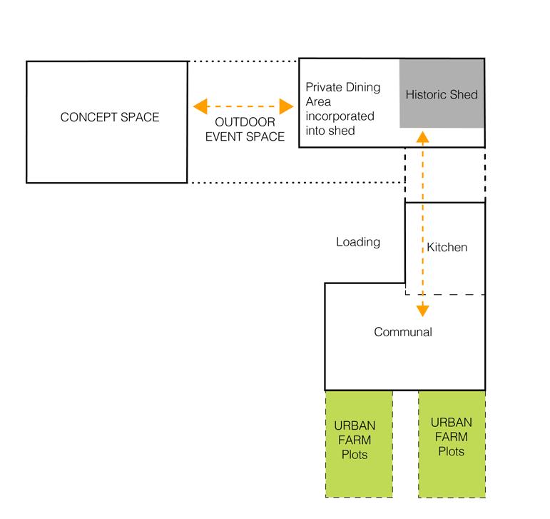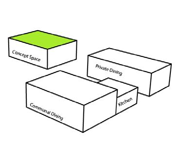 Program: Private Dining Area Communal Dining Area Concept Space “Kitchen” Garden CONCEPTUAL PROGRAMMING 1,000 SF 1,000 SF 1,000 SF 1,000 SF 4,000 SF SITE: OLD GOUCHER - BALTIMORE, MD