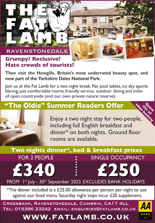 The Oldie is available in audio and e-text format for the benefit of blind and partially sighted readers through RNIB Newsagent. Telephone 0303 123 9999 or visit www.rnib. org.uk/newsagent for further details.