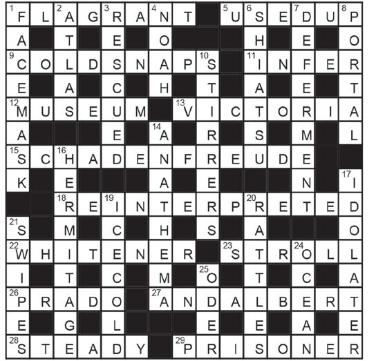 Moron 428 answers: Across: 1 Toots, 4 Wheat (Tout de suite), 8 End, 9 Information, 10 Lash out, 12 Trait, 13 Excuse, 14 Varied, 17 Blaze, 19 Impiety, 21 Imagination, 23 Gas, 24 Entry, 25 Épées. Down: 1 Trial, 2 Off, 3 Serious, 4 Wraith, 5 Evict, 6 Tentative, 7 Adopted, 11 Socialise, 13 Embargo, 15 Appease, 16 Airily, 18 Exact, 20 Yonks, 22 Ice.