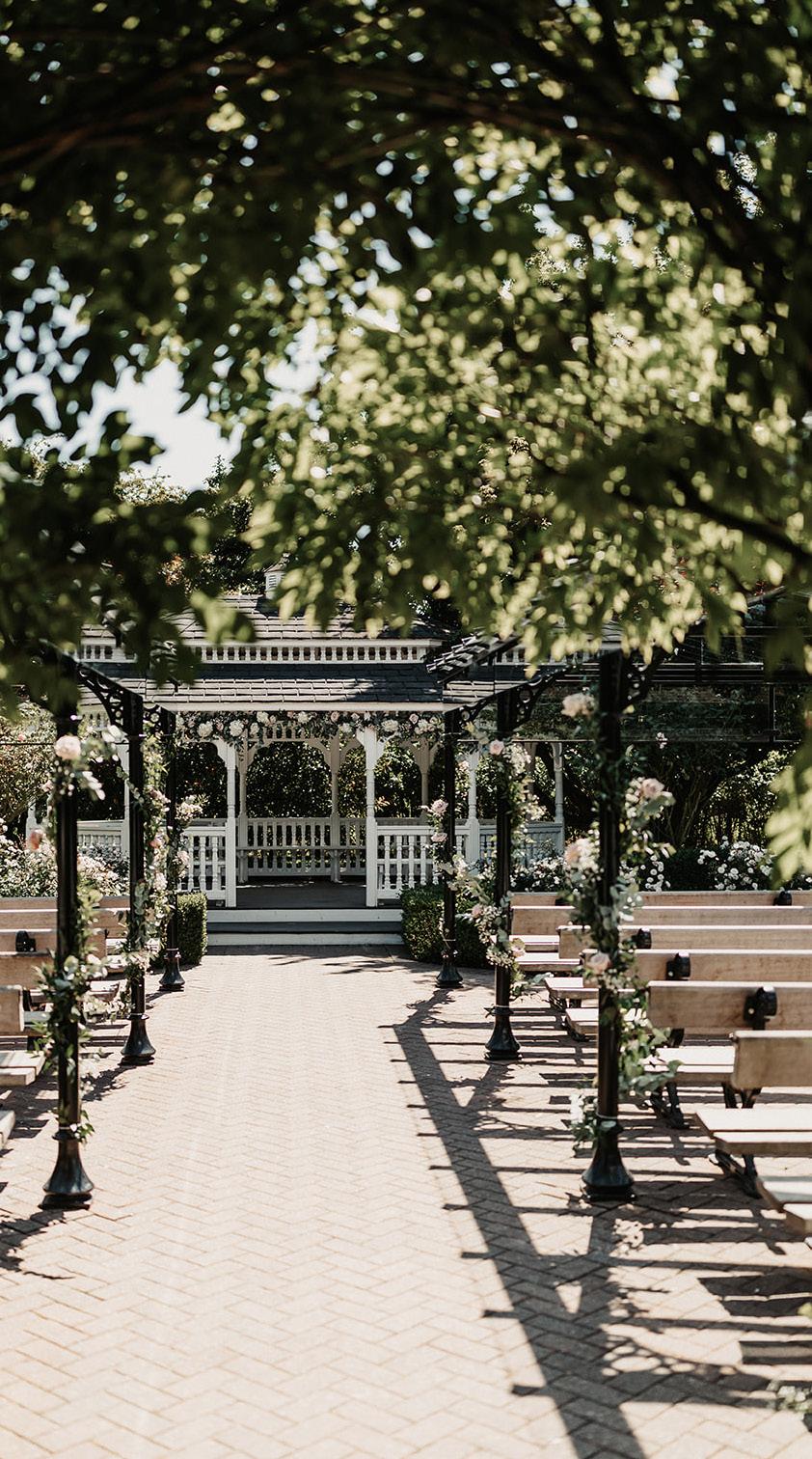 Both Gazebo and Wisteria aisle are shaded, covering you during the ceremony in all weathers.
