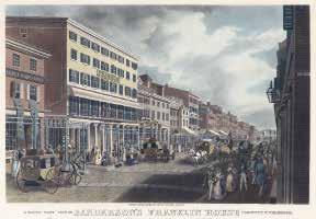 17. A South West View of Sanderson’s Franklin House Chestnut St. Philadelphia. Printed by C. P. Harrison, Philadelphia. Aquatint, 1844. Image size 11 3/4 x 18 1/8” (30 x 46 cm). Drawn and engraved by John Ruben Smith. Good condition, save for faint mat line. Short tear in lower left margin, outside of plate line. Fine original handcoloring. Jay Snider Collection sale, #283; Snyder, 205; Whol, 153. #88352-1 $3,250.00