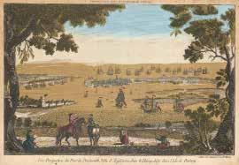 16. Vue Perspective du Port de Portsmouth, Ville d-Angleterre, dans le Hampshire dansl’isle de Portsey. a Paris chez Daumont Rue St. Martin. Copper plate engraving, 1765. Image 10 1/4 x 15 5/8” (26 x 39.7 cm). Good condition, save for some overall time-toning and occasional fox mark. Two tiny worm holes: one in lower title margin, the other in the rock in which the artist is shown (lower left). Fine original handcoloring. #97328-1 $1,750.00
