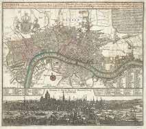 27. Londinum celeberrima Metropolis, splendidissima Regia et opulentissimum Angliae Emporium. Published by Matthew Seutter, Augsburg. Engraving, c.1720. Engraved by Johann Thomas Kraus. Image size 19 5/8 x 22 5/8” (50 x 57.5 cm). Overall in good condition, some worm holes and surface soiling. Original handcoloring. Howgego #68. #60649-3 $2,250.00