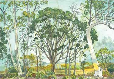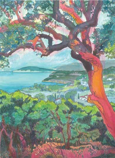 7. South of France. Watercolor with colored pencil, 2011. Image size 23 1/8 x 17” (58.6 x 43.3 cm). Signed lower right in image with yellow pencil. Signed and titled in pencil on verso. Very good condition. #102767-1 $1,250.00