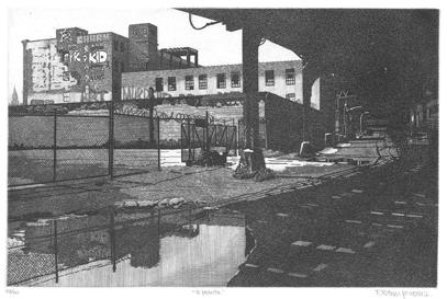 40. 5 Pointz. Line etching, 2017. Image size 7 5/8 x 11 5/8” (19.4 x 29.6 cm). Signed and titled in pencil. Edition 50. Very good condition. #93507-3 $350.00