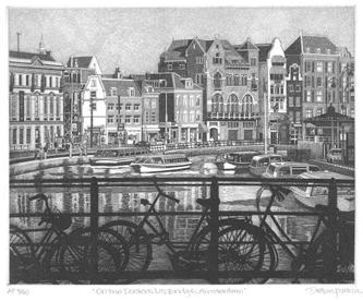 38. On the Doelensluis Bridge, Amsterdam. Etching, 2024. Image size 8 1/2 x 10 5/8” (21.5 x 27 cm). Signed and titled in pencil. Very good condition. #101404-2 $350.00