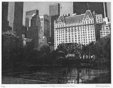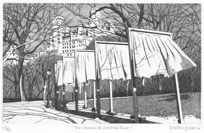 34. The Gates of Central Park Etching, 2005. Image size 5 7/8 x 9 3/4” (15 x 24.8 cm). Signed and titled in pencil. Edition 40. Very good condition. #37733-8 $325.00