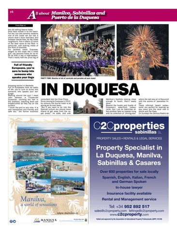 IN DUQUESA consultant told the Olive Press. Since moving to Duquesa in 2012, he reckons the tourist trade is as strong as its ever been. “But if you want to be into the Spanish culture you should move inland to get away from the expat areas,” he adds. And with