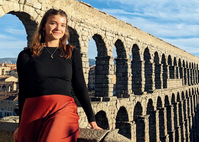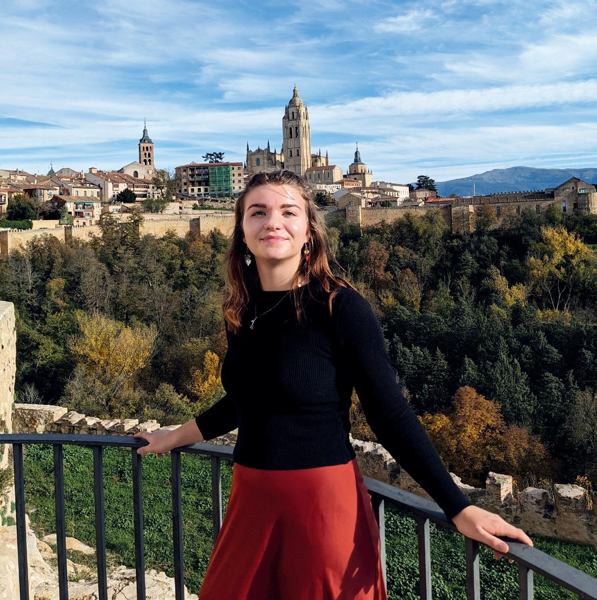 anderen Sehenswürdigkeiten der Stadt machen kann, um zum Bahnhof zurückzukehren. Der Spaziergang zur Burg gibt Ihnen einen Eindruck von Segovia, da Sie auf der einen Seite an jahrhundertealten Gebäuden und auf der anderen Seite an beruhigenden Ausblicken auf die Stadt mit ihren grünen Tälern vorbeikommen. Ich habe Segovia im Herbst besucht, und das ist wirklich eine der besten Reisezeiten, da sich die Bäume dann in leuchtenden Rotund Orangetönen verfärben. Nach einem kurzen Spaziergang entlang der Stadtmauern erreichen Sie den Alcázar. Die hoch aufragenden Türme und prächtigen Tore erinnern an ein Märchen, aber die Wunder haben gerade erst begonnen. Auf der linken Seite des Rasens vor dem Schloss befindet sich die Kasse. Die Eintrittskarten kosten nur zehn Euro und beinhalten den Zutritt zum Schloss, dem Museum und dem Turm. Obwohl ich dachte, dass es nicht schöner werden könnte als das Äußere des Schlosses, hatte ich mich gewaltig getäuscht. Die Innenhöfe und Ausstellungsräume