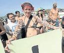 Die Gruppe Genoveses Sin Hotel organisierte einen Marsch an der Strandpromenade von Almeria, bei dem Anhänger Transparente entrollten und Slogans skandierten.