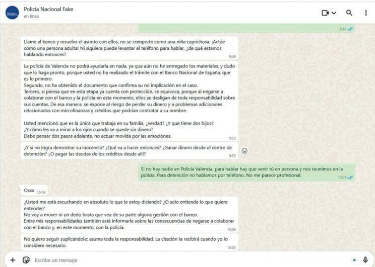 The scammers then threatened her, writing: “What if you cannot prove you are innocent? Make money while in jail? Are you going to pay off your debt from there?” This time, the fake officer agreed to Elena’s request to communicate in Spanish, but he would never answer calls and the texts appear to have been run through an AI translator. Cyber-crime in Spain