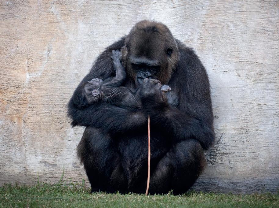 birth to a baby girl, and far from seeking privacy, delivered her little one in the open air enclosure she calls home, with visitors witnessing every moment.