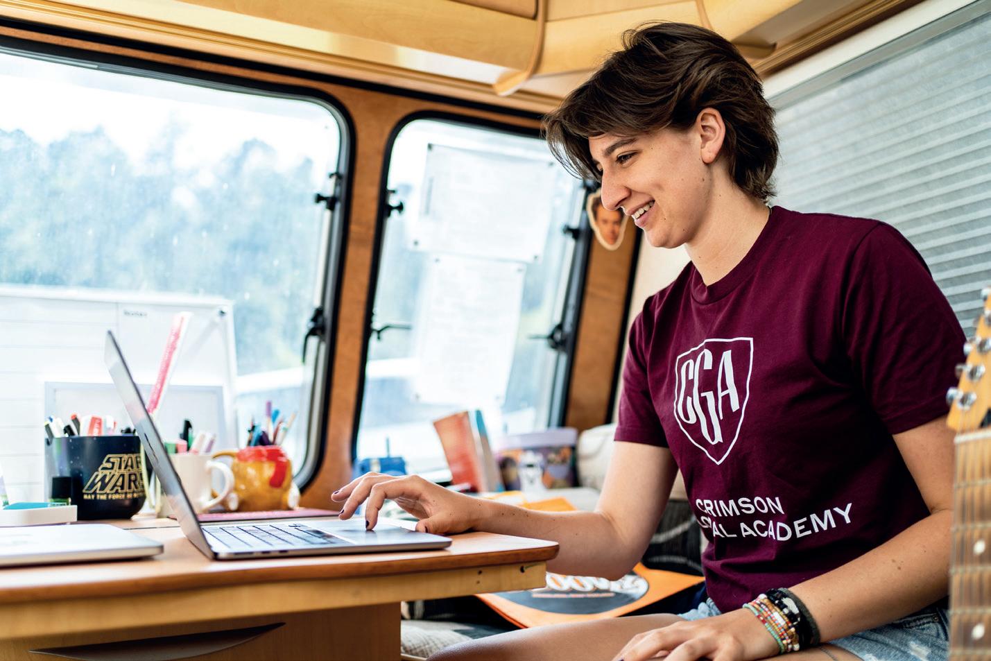 Siena, a CGA student from New Zealand, found a renewed drive for learning after transitioning to online education. “All my teachers really get me, which is something that I hav-