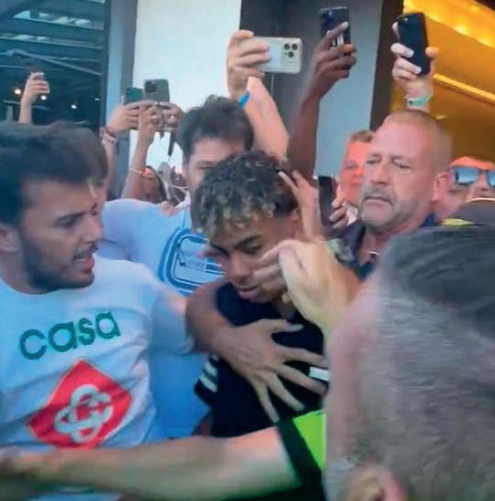 bus, the word was out - Spain’s next footballing prodigy was in Marbella. That evening, he dined alongside teammate Williams at Mosh Fun Kitchen, Nueva Andalucia. Videos posted on social media capture the huge crowds gathered at the venue to catch a glimpse of Spain’s hottest footballing talent. Yamal had to be helped by private security amongst the gaggle of fans to safely reach his car.
