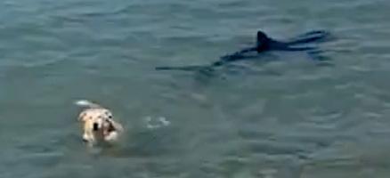 A PET dog has been filmed chasing a shark off a Spanish beach.