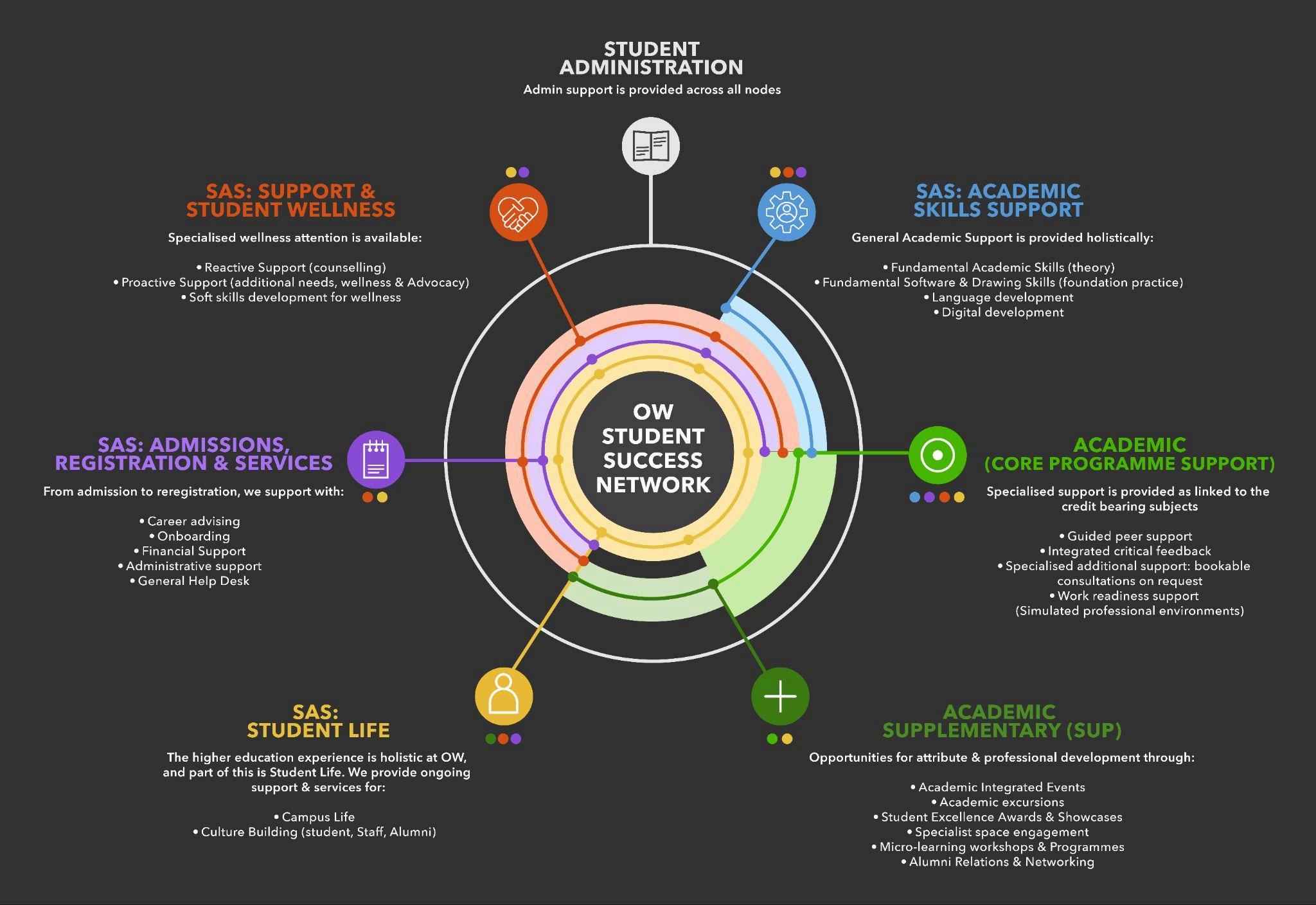 Mission: OW’s mission is to be dynamic in its instructional design, ensuring our curricula and processes remain relevant to evolving thought-leadership and technologies affecting the creative fields We aim to provide appropriate instruction in the field of creative education in order to deliver creative and critical thinkers who possess the technical, dynamic, professional, and transdisciplinary capabilities required by professional creative industries, both locally and globally We aim to offer appropriate supplementary opportunities that allow for soft-skill development, that nurture and support our creative thinkers, and that create an environment rooted in creative expression, experimentation, and rigour.
