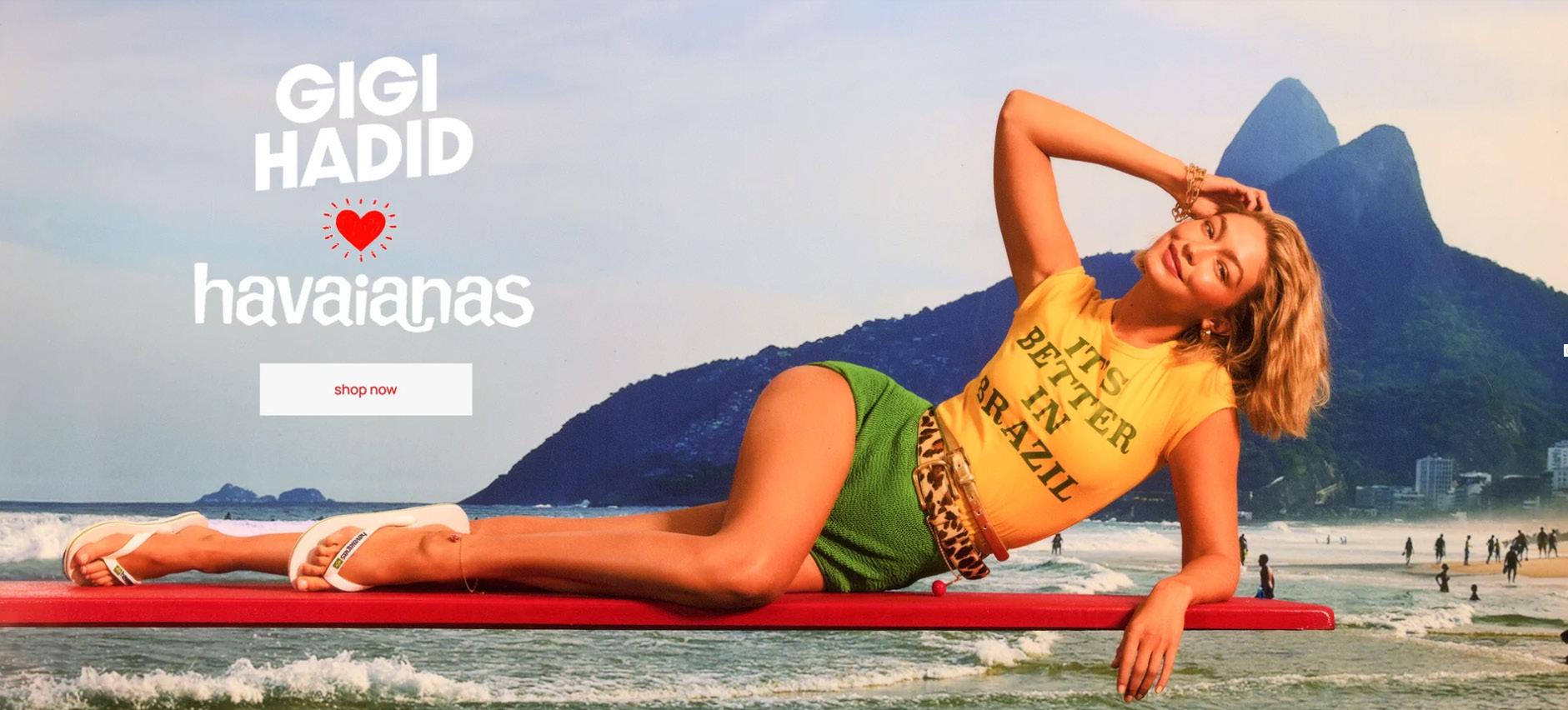 Screenshot of Havaianas campaign featuring Gigi Hadid.