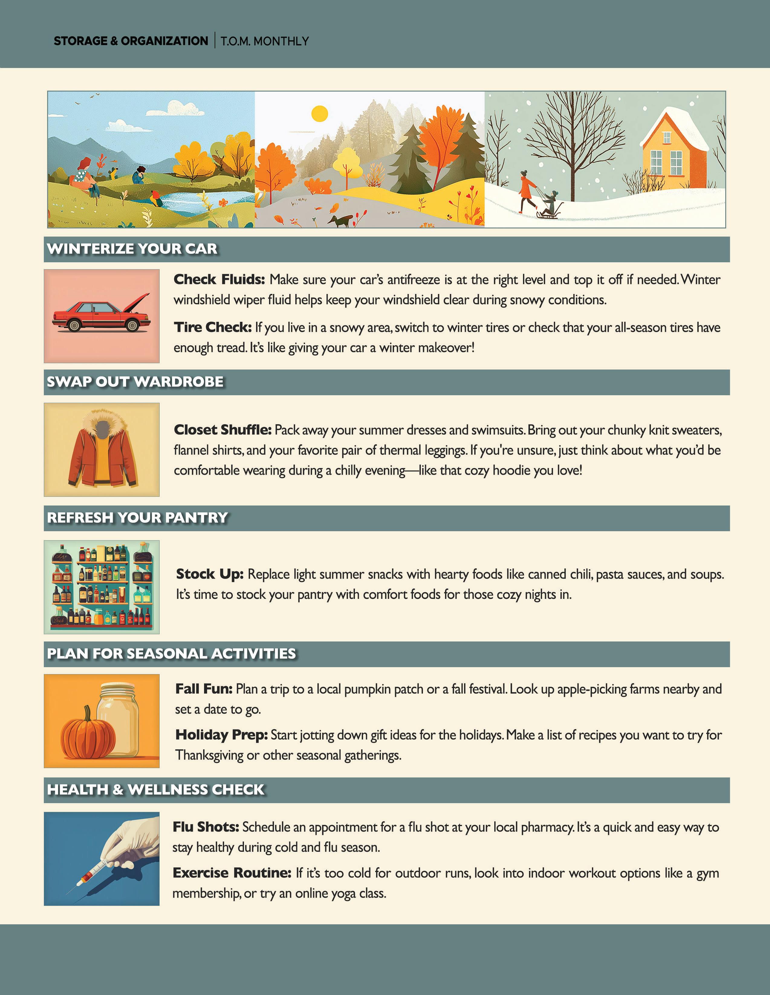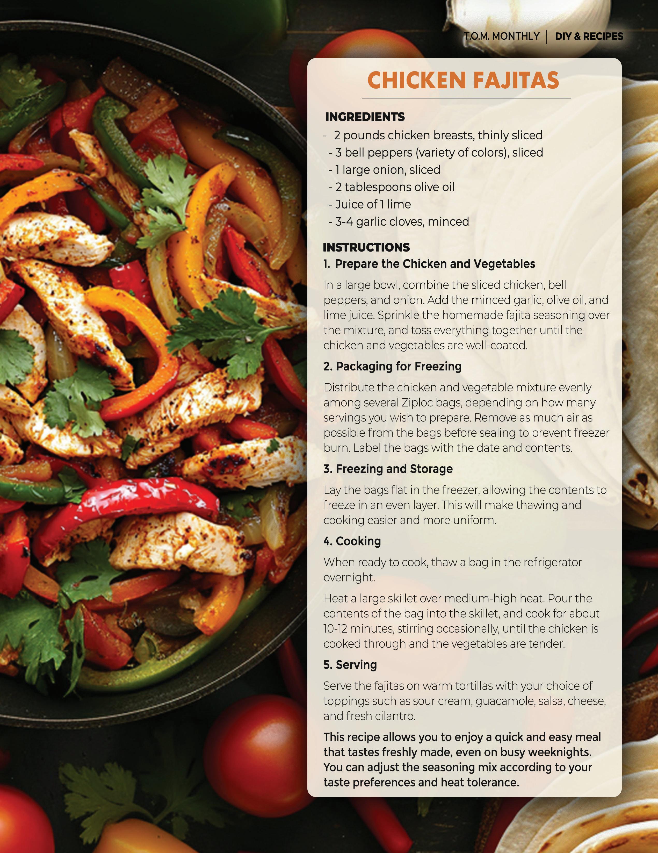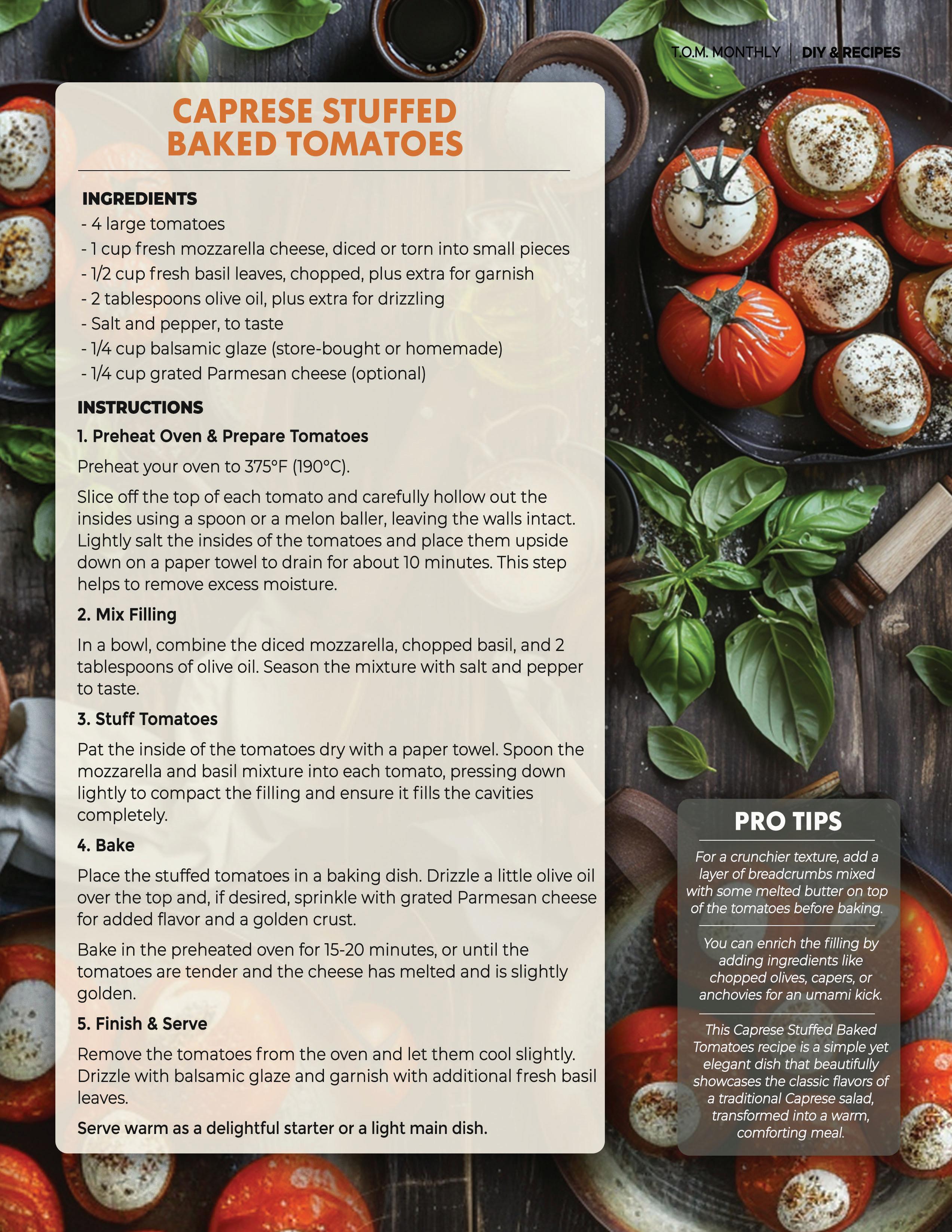 September's issue of THE ORGANIZER MAN MONTHLY is all about prepping for fall! From "Tomatoes, Tomatoes, Tomatoes," where we spill kitchen secrets, to mastering make-ahead freezer meals for easy weeknight dinners, this issue has it all. Transition smoothly from summer to fall with cozy home updates and wardrobe swaps. Find the perfect cutting board for your kitchen, tackle tough stains, and whip up recipes like homemade fajita seasoning, TOTCHOS, and Caprese stuffed baked tomatoes. Plus, celebrate the joy of coming home to Jackson’s excited jumps and tail wags. Get organized, cozy, and ready for fall!