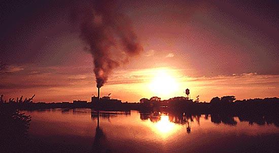 Nekoosa Paper Company on the Wisconsin River. Smoke from the paper mill is heavily laden with sulphites. From DOCUMERICA: The