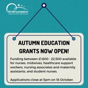 You do not need to be a member of the RCN to be eligible for an RCN Foundation grant. For more information about our grants programme, including funding available and eligibility, visit here or click the image above.
