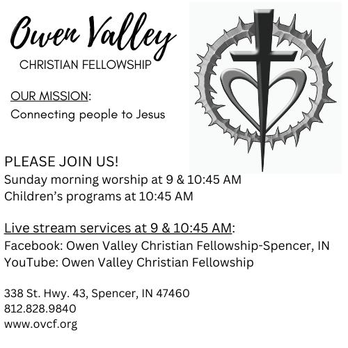 Owen Valley Fire Territory Board, 6 p.m. at the fire department, 401 W. Walnut St., Spencer.