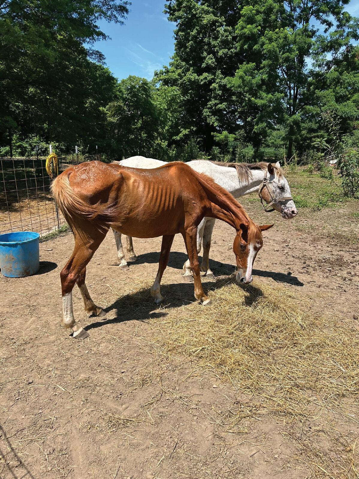 “Both horses look to be extremely malnourished,” the affidavit reads. “I could see the horses’ ribs and hip bones through their coats.”