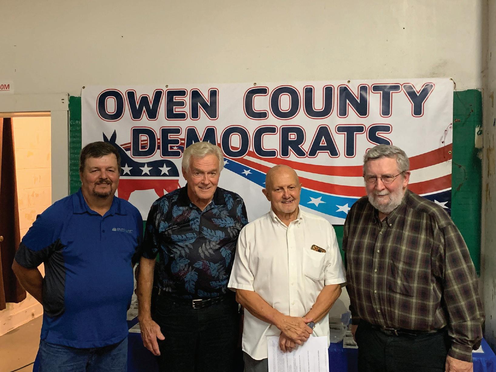 FROM TOP: From left, Jon Stanz, Mike Spinks, Ed O’Brien and Dean Bruce pose for a photo at the Democratic Headquarters. Stanz, Spinks and Bruce all served on the Spencer Town Council together. // County Councilman