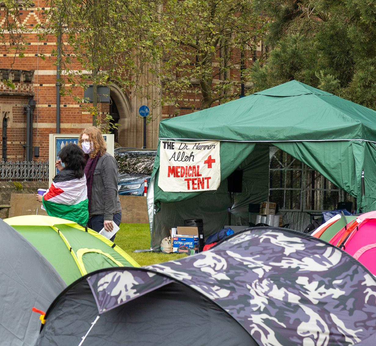 As the impasse with the University plays out, OA4P has carried out a number of demonstrations, including rallies, and the die-in during graduation ceremonies. Dismayed by the University’s lack of response, the group has expanded encampment to the Radcliffe Camera, hoping to push the Univerity to negotiate. During this time, Oxford has witnessed many pro-Palestinian protesters building a community of solidarity and hope around their support for Gaza.