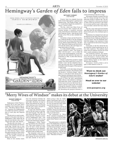Hemingway’s Garden of Eden fails to impress bEtHANY O’grADY staFF Writer