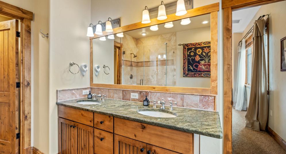 Among the largest and most flexible floor plans in Cimarron, the residence was designed to accommodate up to 14 guests, with bedroom suites distributed across three levels for privacy and an expansive central great room designed for gathering. Enter through the mudroom on the first level, featuring two ensuite bedrooms and a dedicated laundry room.