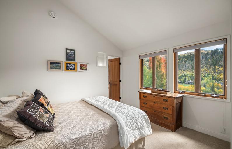 Steps from the Sanctuary Trail, this location provides walk-out-the-door access to hiking with a connection to the Skyline Trail, Fish Creek Falls, and beyond. Designed to frame the landscape, the residence features a vaulted great room where walls of glass capture the Ski Area’s sunlit slopes. beyond. Designed to frame the landscape, the residence features a vaulted great room where walls of glass capture the Ski Area’s sunlit slopes. Doors open to a deck set against a backdrop of mountains, while secluded patios on the sides of the home offer shade and serenity through summer afternoons.