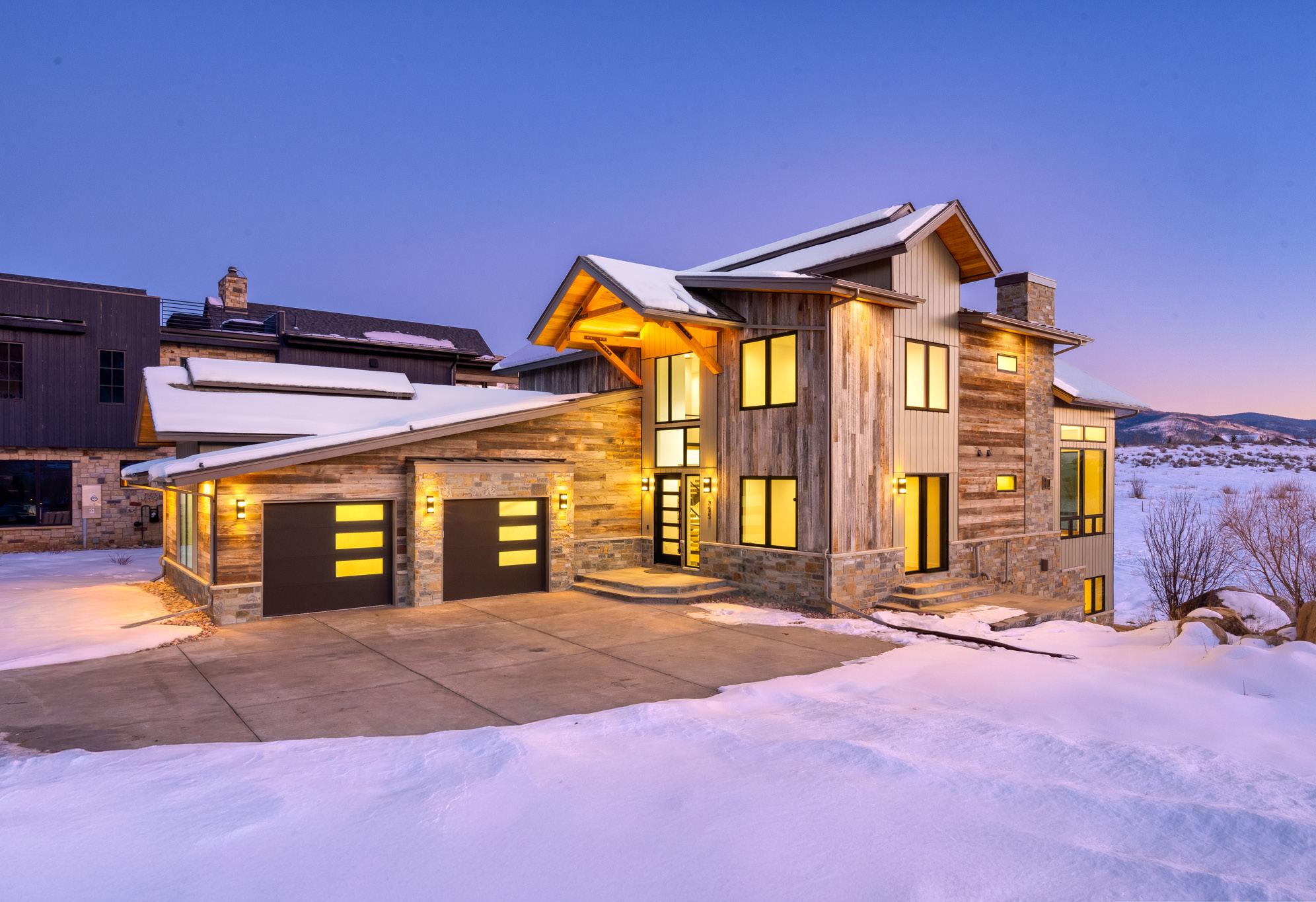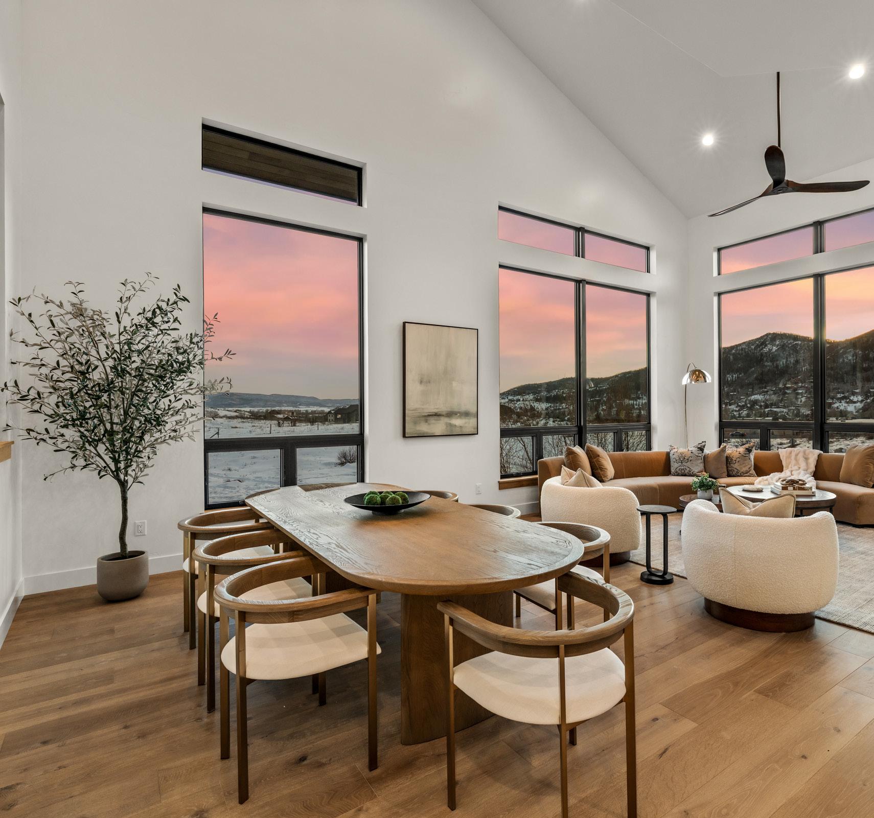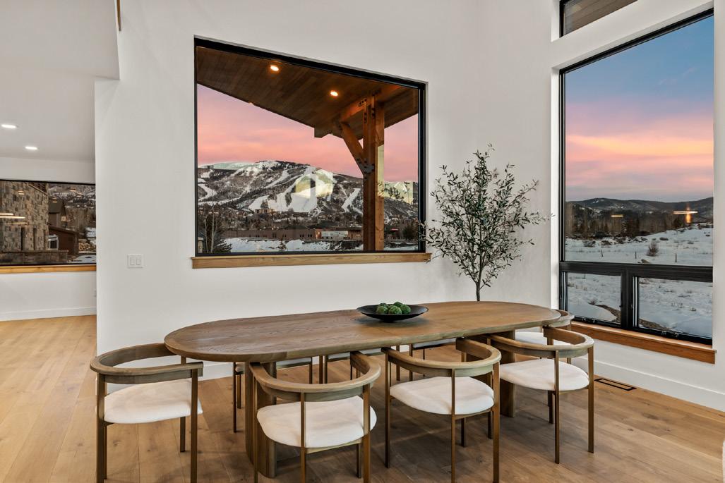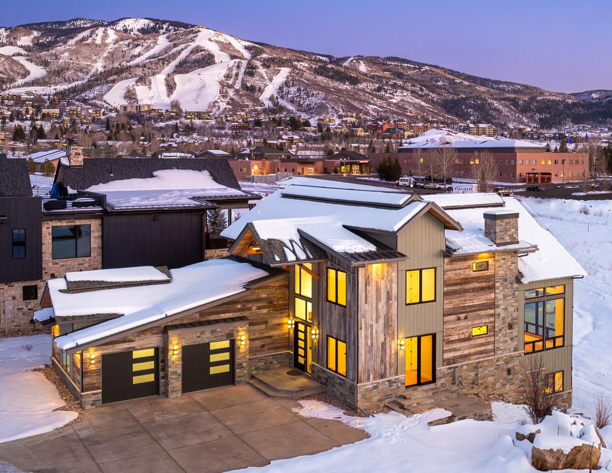 795 Twilight Lane is a striking mountainmodern residence offering exceptional craftsmanship, privacy, and sweeping views of the Steamboat Ski Area, Emerald Mountain, and historic More’s Barn.