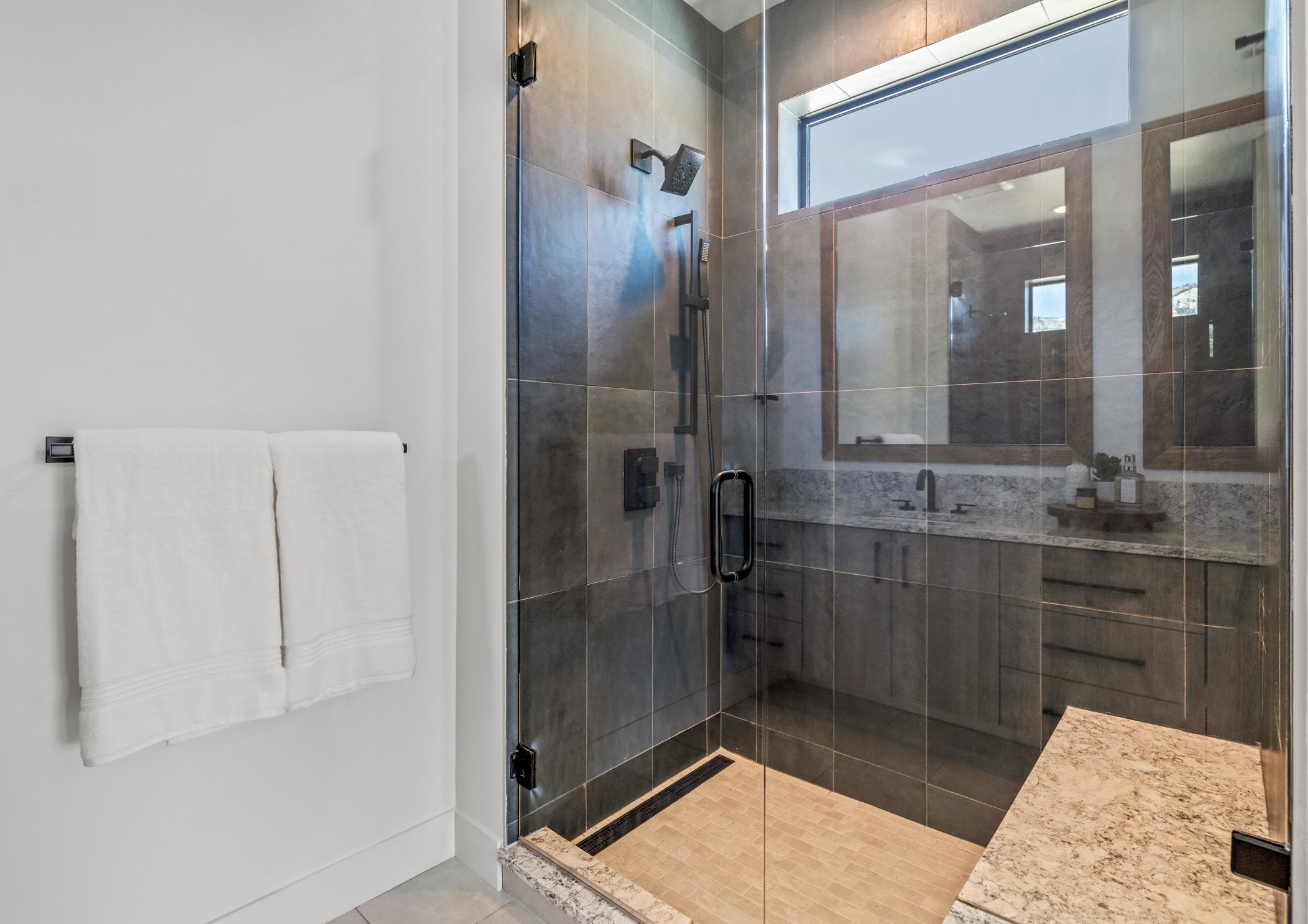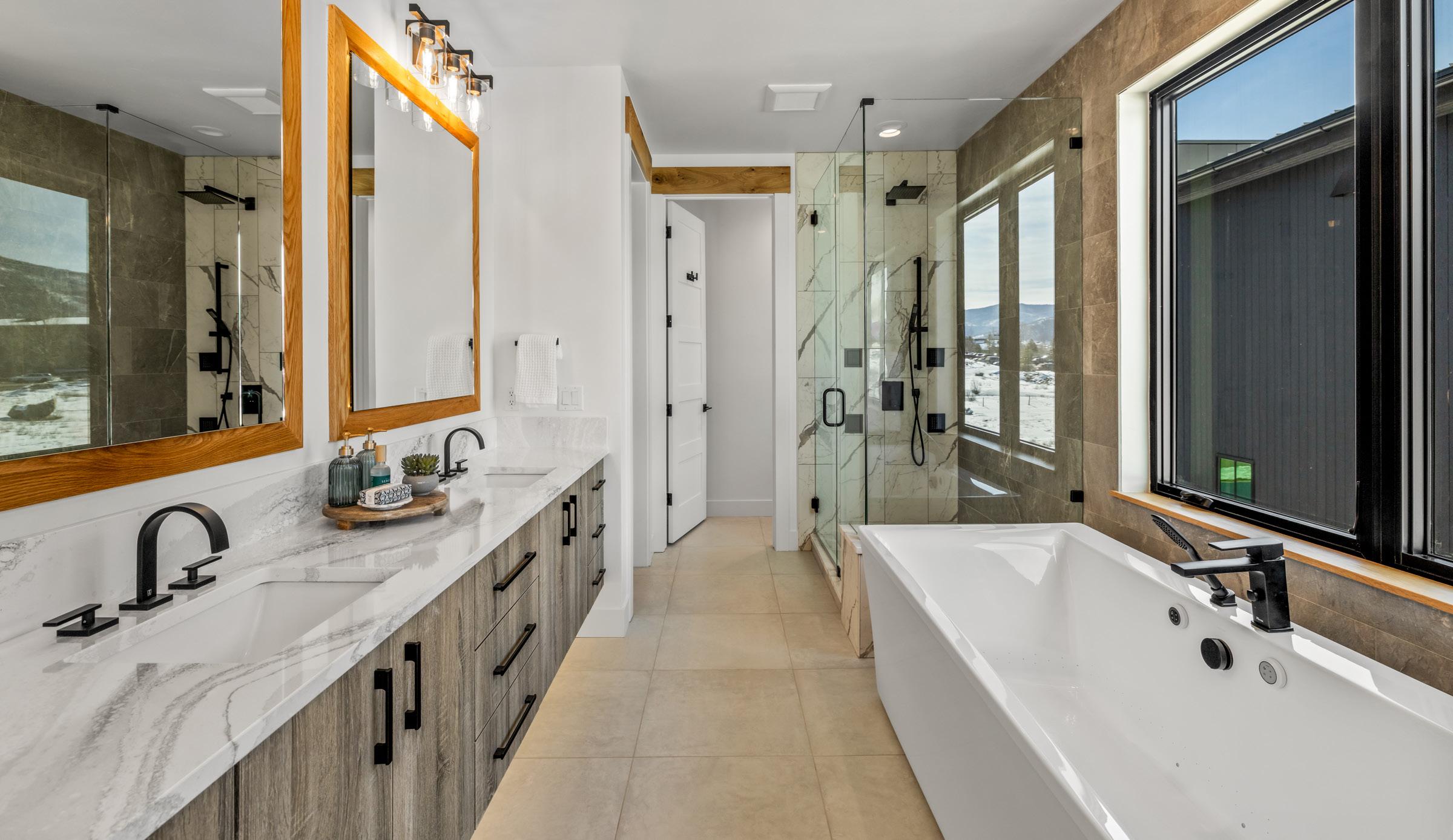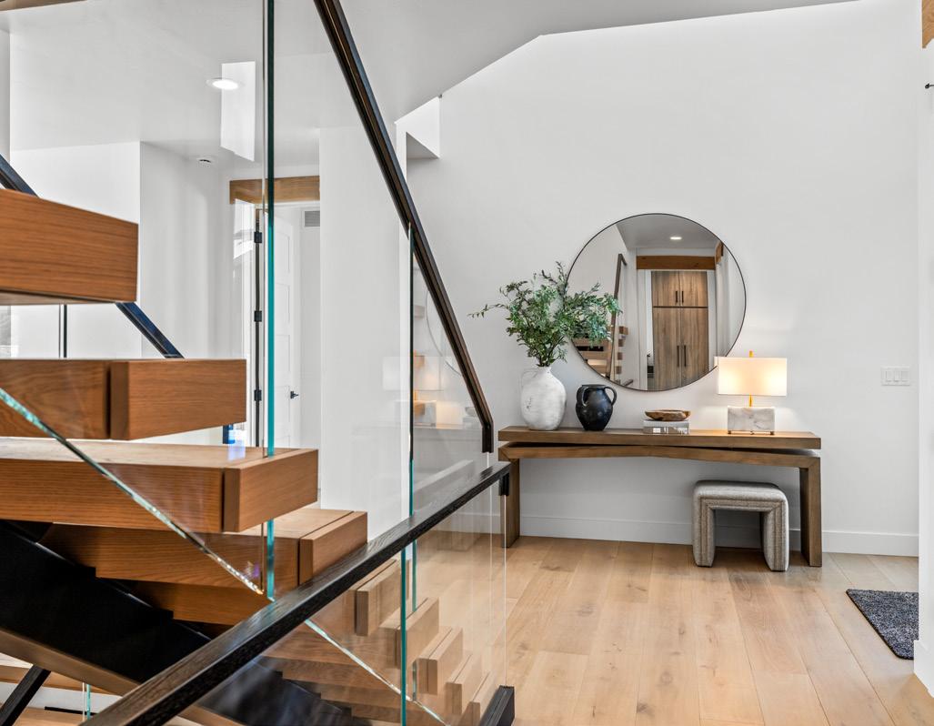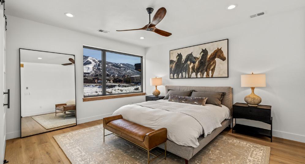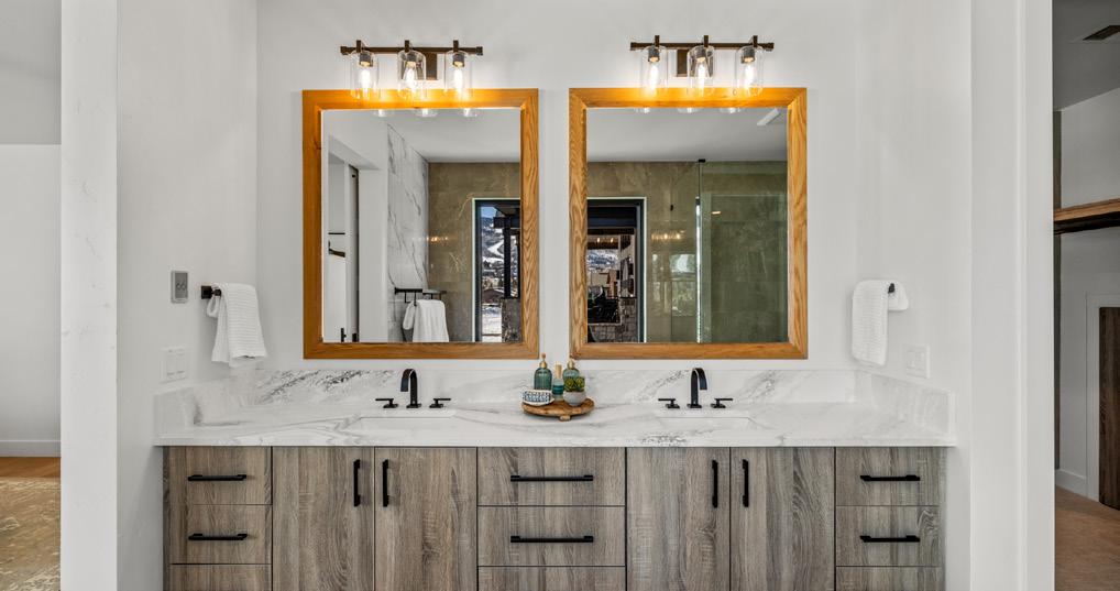 The primary suite delivers spa-level comfort with a Kohler soaking tub, bidet, and radiant heated floors, a dog-wash station, WarmBoard radiant heat, highefficiency central air, and steam humidifier.