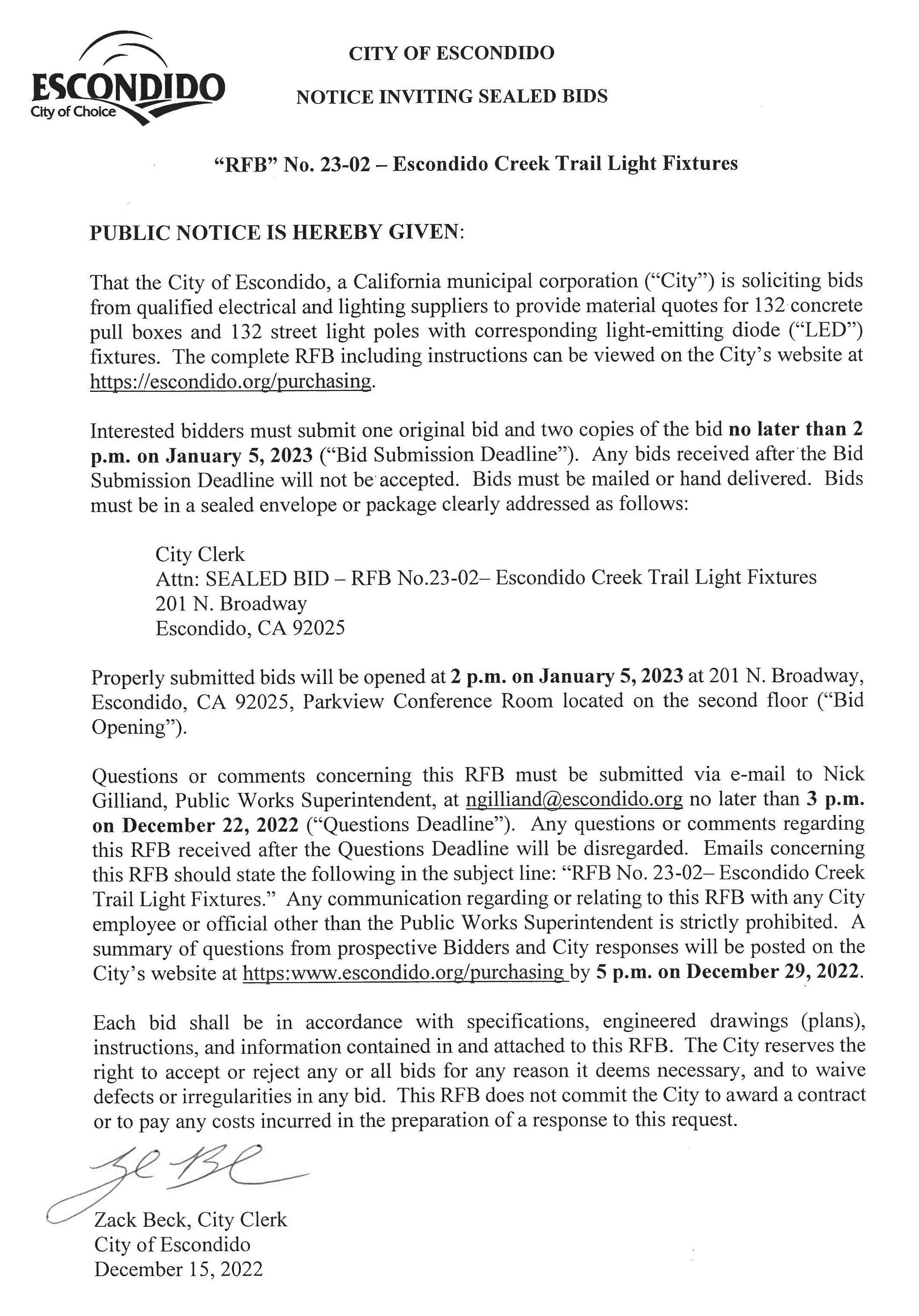 First day of business: 12/22/2022 /s/ Georgette Young Filed with Ernest J. Dronenburg, Jr., County Clerk/ Recorder of San Diego on 12/22/2022 12/29, 1/5, 1/12, 1/19/2023