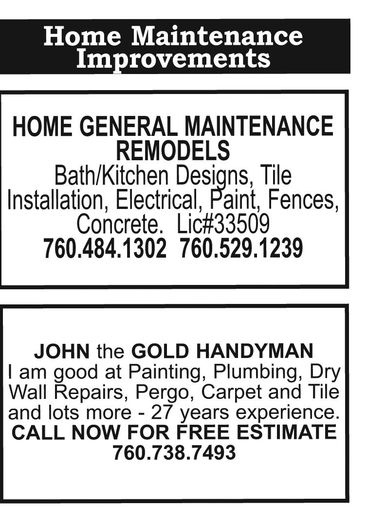 For price, terms and other information, contact lyle e davis at: thepaper@cox.net • 760-747-7119