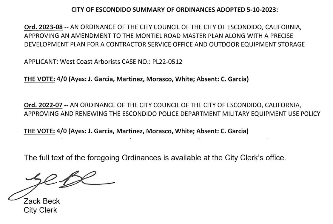/s/ Giovanny Villasenor with Jordan Z. Marks, SD County Clerk/Recorder of San Diego on 4/26/2023 5/4, 5/11, 5/18, 5/25/2023